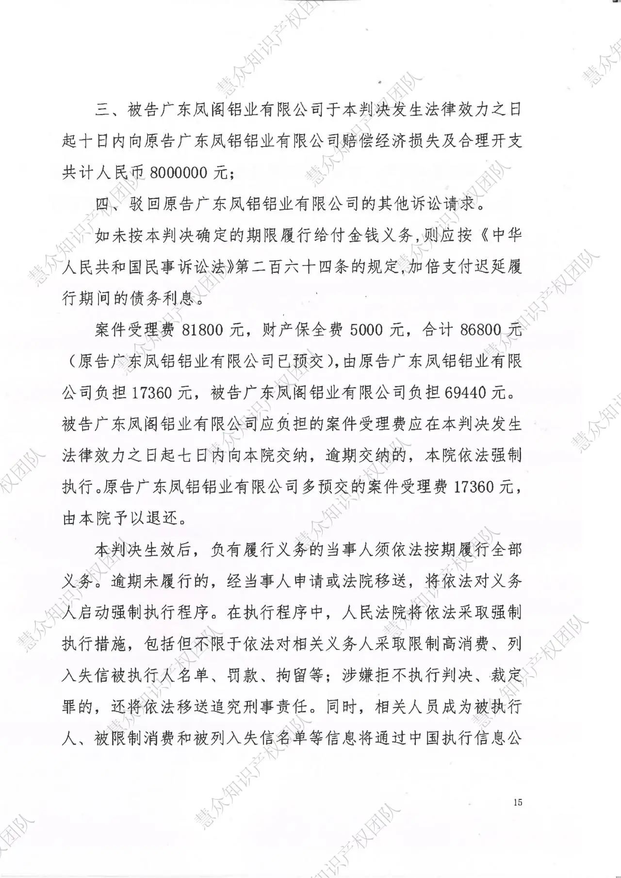 安顺判赔800万!辉知队代理“凤铝”商标维权案胜诉